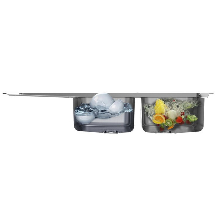 این سینک، با ابعاد کلی ۱۰۰ × ۵۲ سانتیمتر، فضای کافی برای شستشوی انواع ظروف را فراهم میکند. لگنهای آن، با ظرفیت ۳۰ لیتر، برای استفاده روزمره و حتی شستن قابلمهها و ظروف حجیم ایدهآل هستند. طراحی دو لگن عمیق با عمق ۲۰ سانتیمتر کمک میکند تا آب کمتر به بیرون پاشیده شود، شستشو راحتتر باشد و فضای کافی برای خیساندن ظروف بزرگ در اختیار داشته باشید.