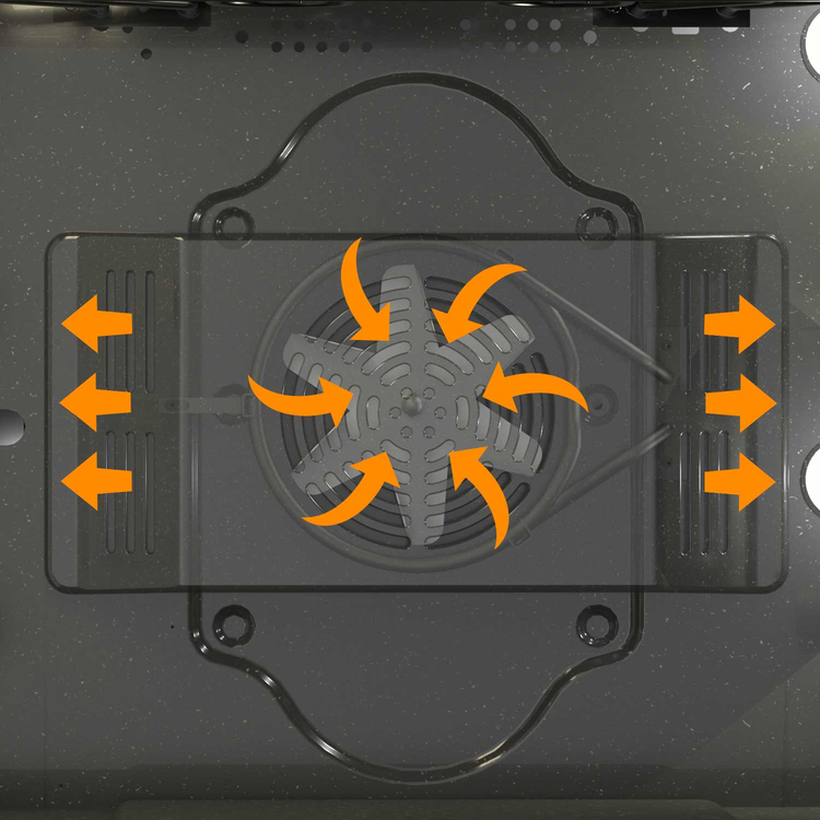 یکی از ویژگیهای مهم فر توکار V۳۱۰B، وجود فن گردش هوای گرم (کانوکشن) است. این فناوری، هوای داغ را بهصورت یکنواخت در سراسر محفظه فر پخش میکند. نتیجه آن، پخت یکنواخت و کامل غذا است.