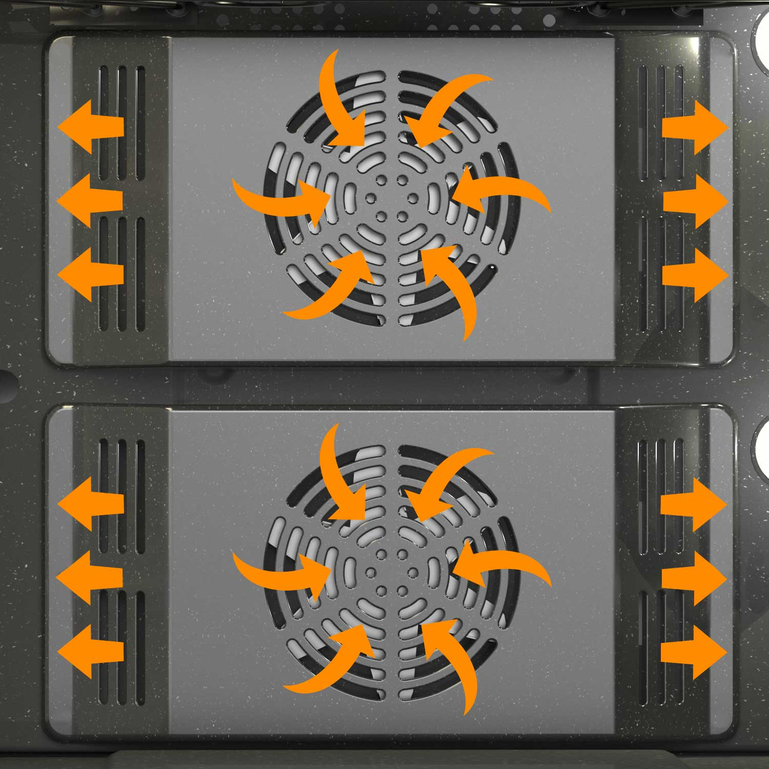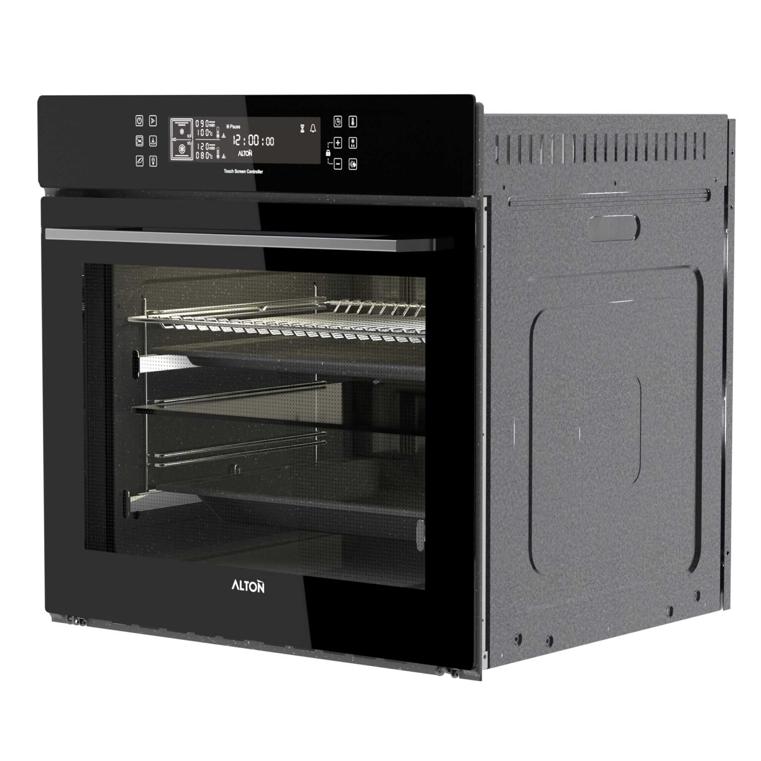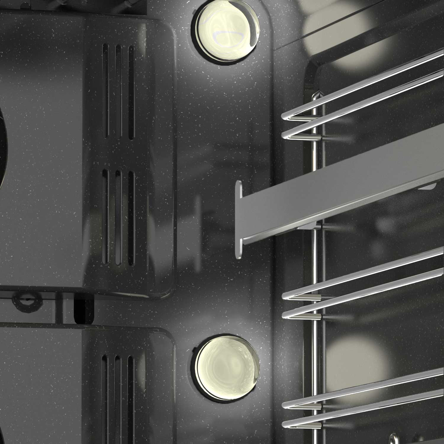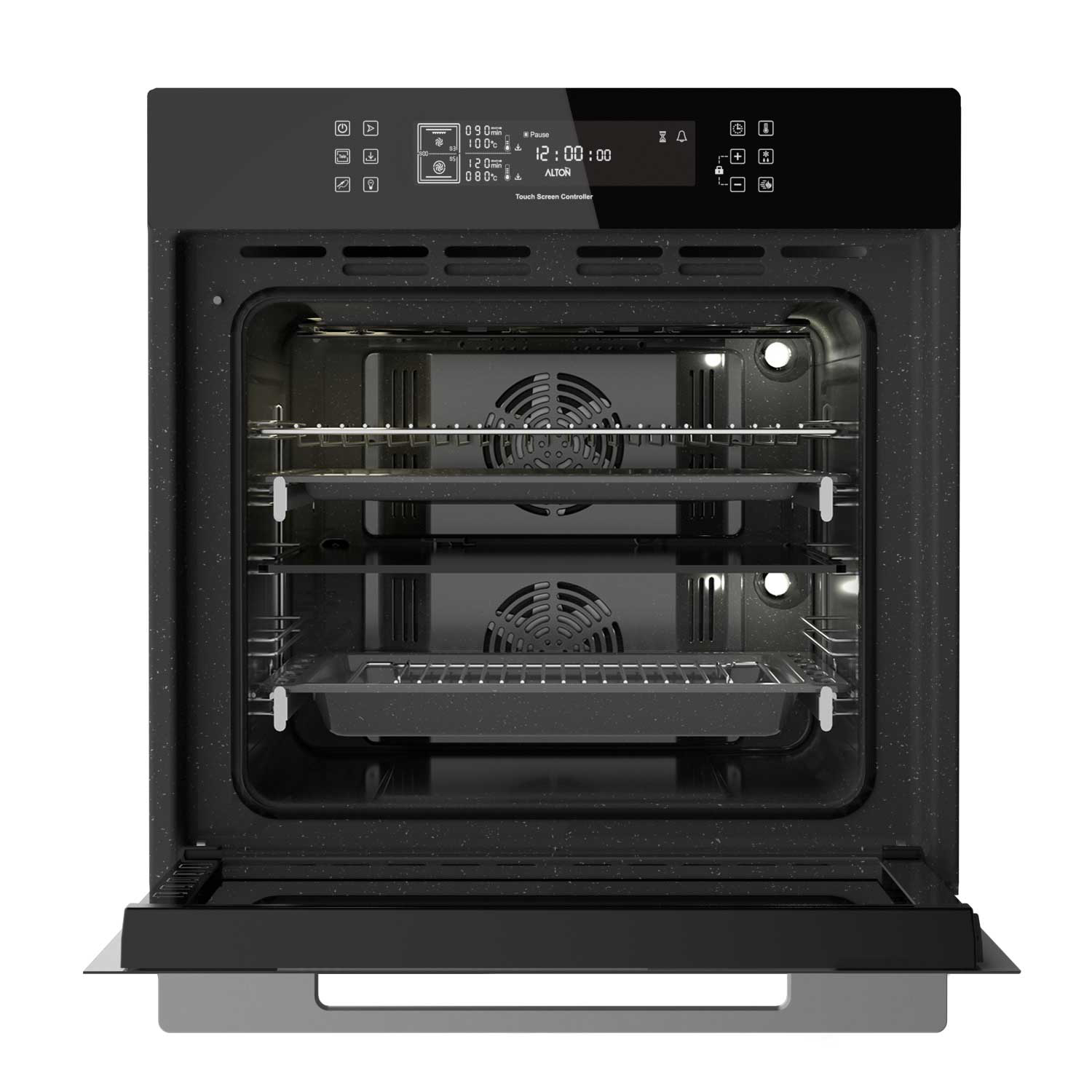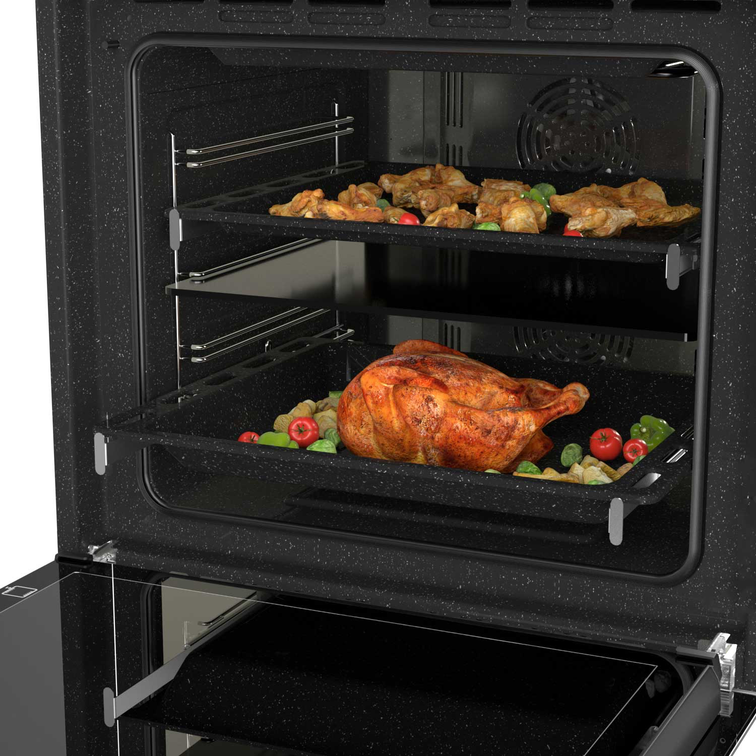حجم ۷۲ لیتری این فر توکار، فضای کافی برای تهیه غذاهای مختلف را فراهم میکند. با دو سینی عمیق و کمعمق و ۴ ریل تلسکوپی، میتوانید ظروف را بهآسانی جابجا کنید. این ویژگی به شما امکان میدهد چندین غذا را همزمان بپزید، از پخت کیک گرفته تا آماده کردن یک ضیافت خانوادگی بزرگ.